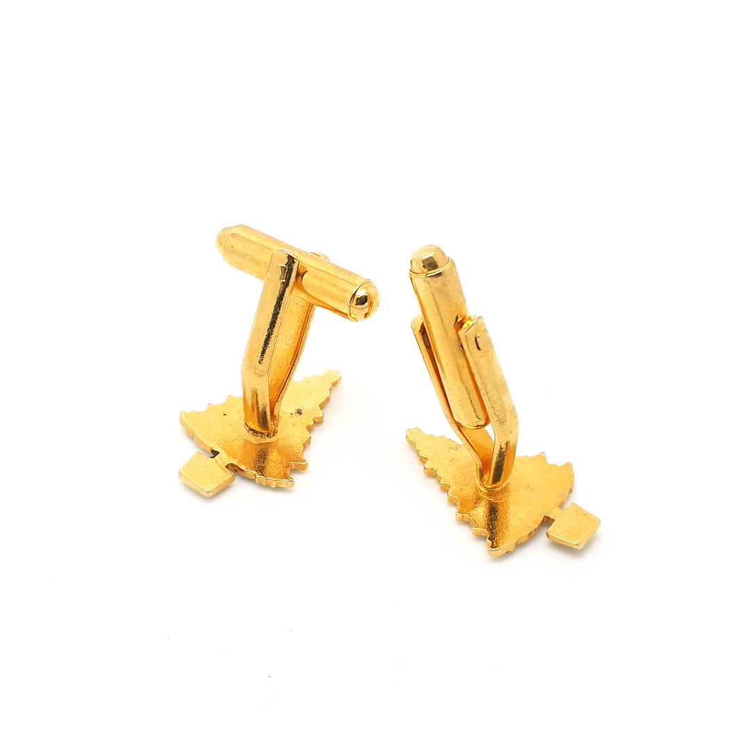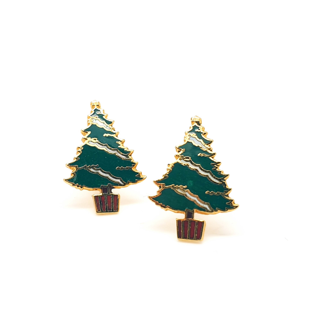 Probably not vintage, but, fun! Simple goldtone but classic cufflinks. A green christmas tree with white guirlande in a red brown striped basket. In very good vintage condition.