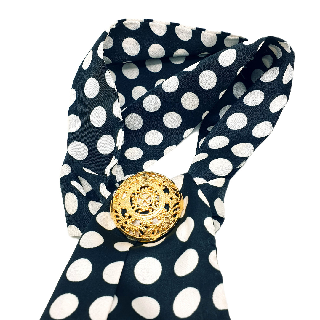Lovely goldtone round open work scarf clip. In very good vintage condition.
