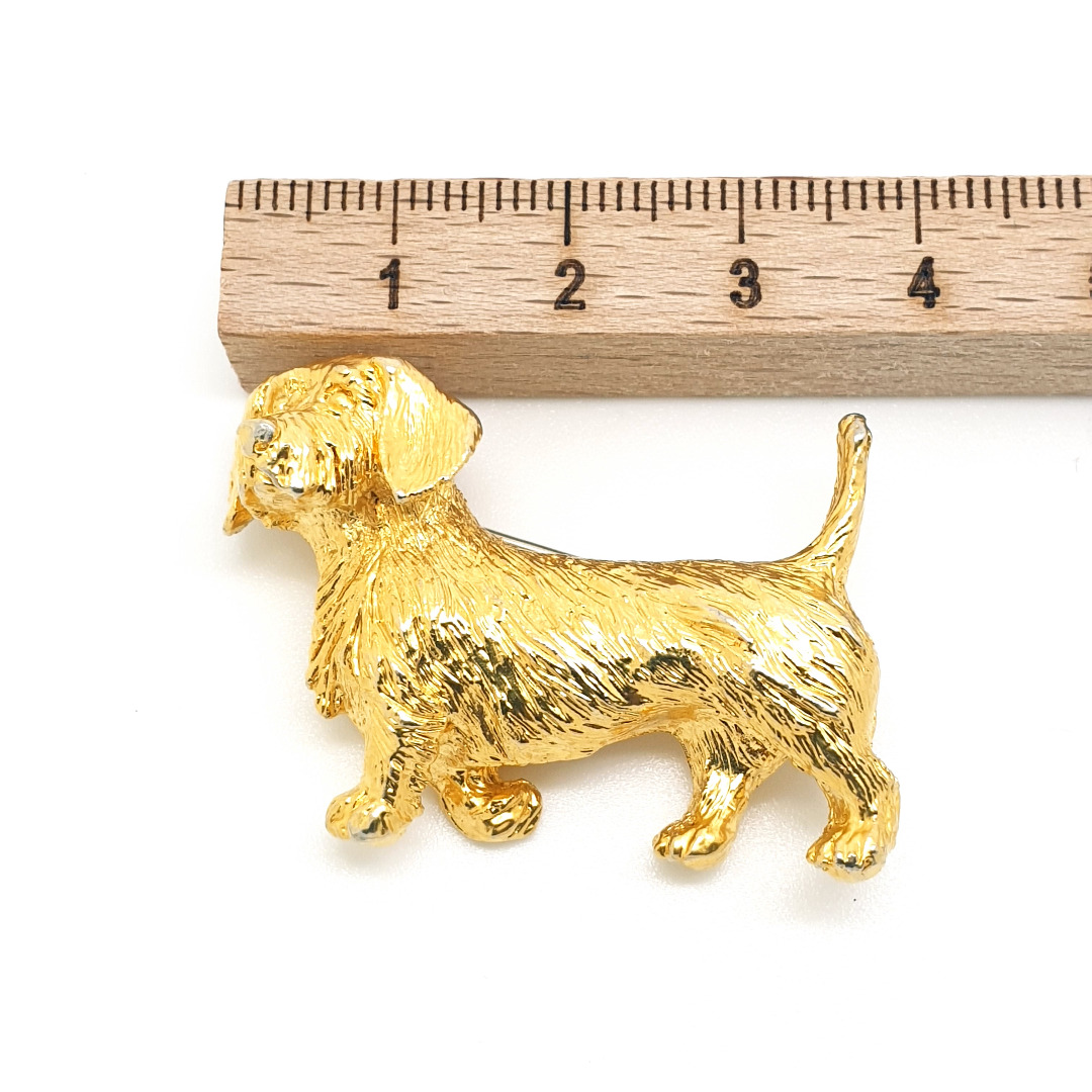 Adorable goldtone dachshund brooch by Cabouchon from the 90s. In very good vintage condition.