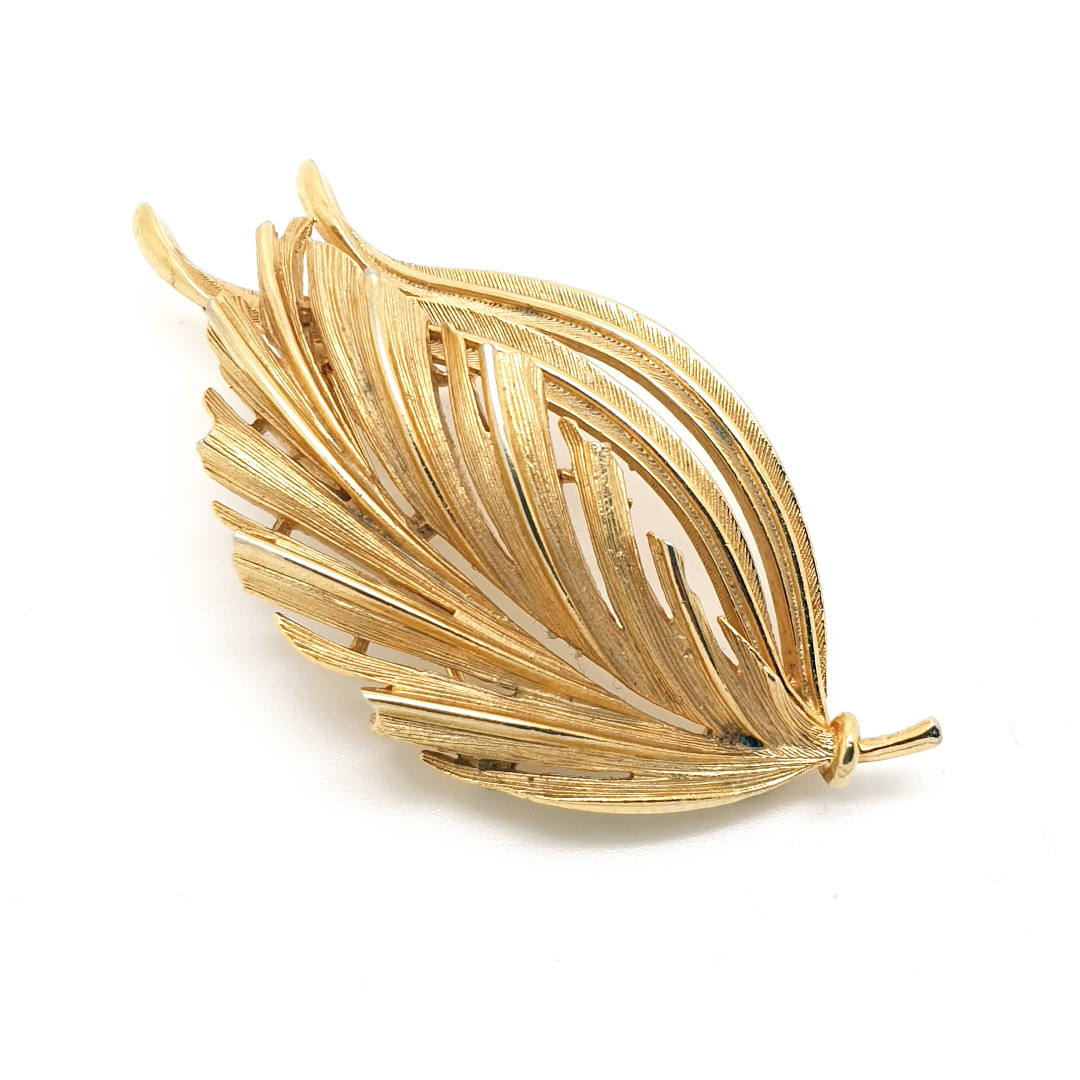 Eenvoudige, mooie goudkleurige bladbroche van Lisner. Gemerkt aan de achterzijde.